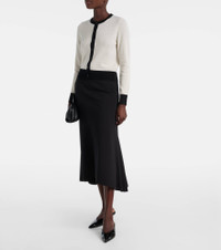 Invest in Nili Lotan's timeless wardrobe staples – where impeccable fit meets sophisticated tailoring. The Meadow cardigan is made with pure cashmere and features a buttoned front, a ribbed hem and cuffs, and contrasting detailing. Product Details - Material: 100% cashmere - Care instructions: dry clean - Made in China - Designer color name: Ivory/Black - Item color: white, black - Closure: buttoned front - Hem: ribbed - Cuff: ribbed - Item number: P01076410 Size & Fit - True to size - Semi-sheer - Straight fit - Stretchy fabric - Slightly cropped - The model seen in the picture is 178cm-5'10" and wearing a size XS