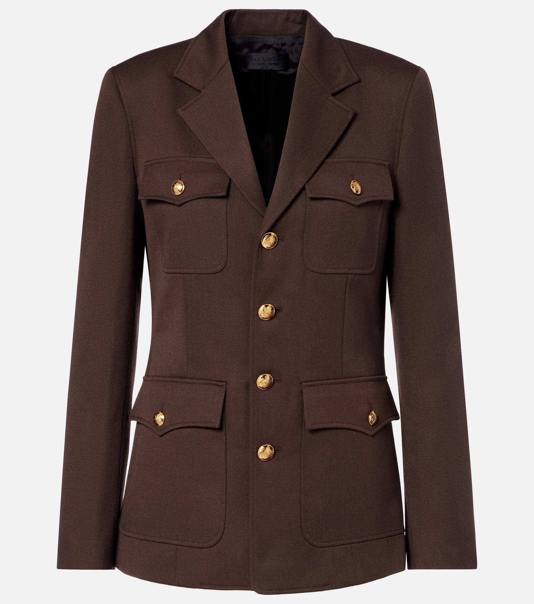 Invest in Nili Lotan's timeless wardrobe staples – where impeccable fit meets sophisticated tailoring. The single-breasted Nelson blazer is made from pure virgin wool and features four front pockets, all decorated with golden buttons. Product Details - Material: 100% virgin wool - Care instructions: dry clean - Made in Portugal - Designer color name: Oxblood - Item color: brown - Lining: 100% viscose - Fully lined - Collar: notch neck - Pockets: patch pockets, angled chest pockets - Vent: single - Item number: P01076336 Size & Fit - True to size - Shoulder pad inserts - Cinched waist - Non-stretchy fabric - Falls below the hip - The model seen in the picture is 178cm-5'10" and wearing a size US 4