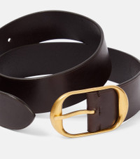 Nili Lotan creates a contemporary classic with the Nili belt. Made from calfskin, this slim style has an oval-shaped, antique gold-tone buckle and an adjustable length. Product Details - Closure: slot-tab fastening - Color of fastening: antique gold - Material: calf leather - Comes with dust bag - Made in Italy - Item number: P00761535 Size & Fit - Width 4cm-1.5" - Buckle width 4,5cm-2"