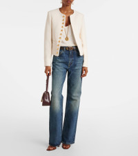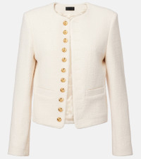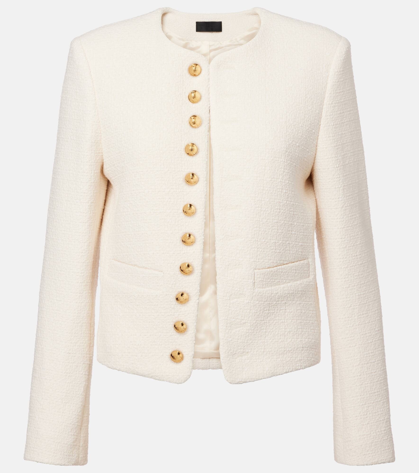 Invest in Nili Lotan's timeless wardrobe staples – where impeccable fit meets sophisticated tailoring. Crafted in cotton-blend boucle, the Patti jacket offers a charming silhouette with its cropped length, statement gold buttons, and sleek welt pockets. Product Details - Material: 57% cotton, 33% polyamide, 8% polyester, 2% other fibres - Care instructions: dry clean - Made in Portugal - Designer color name: Ivory - Item color: ivory - Lining: 100% viscose - Pockets: internal pocket, welt pockets - Pocket lining: 100% cotton - Closure: buttoned front - Item number: P01062372 Size & Fit - True to size - Shoulder pad inserts - Straight fit - Non-stretchy fabric - Slightly cropped - The model seen in the picture is 178cm-5'10" and wearing a size XS