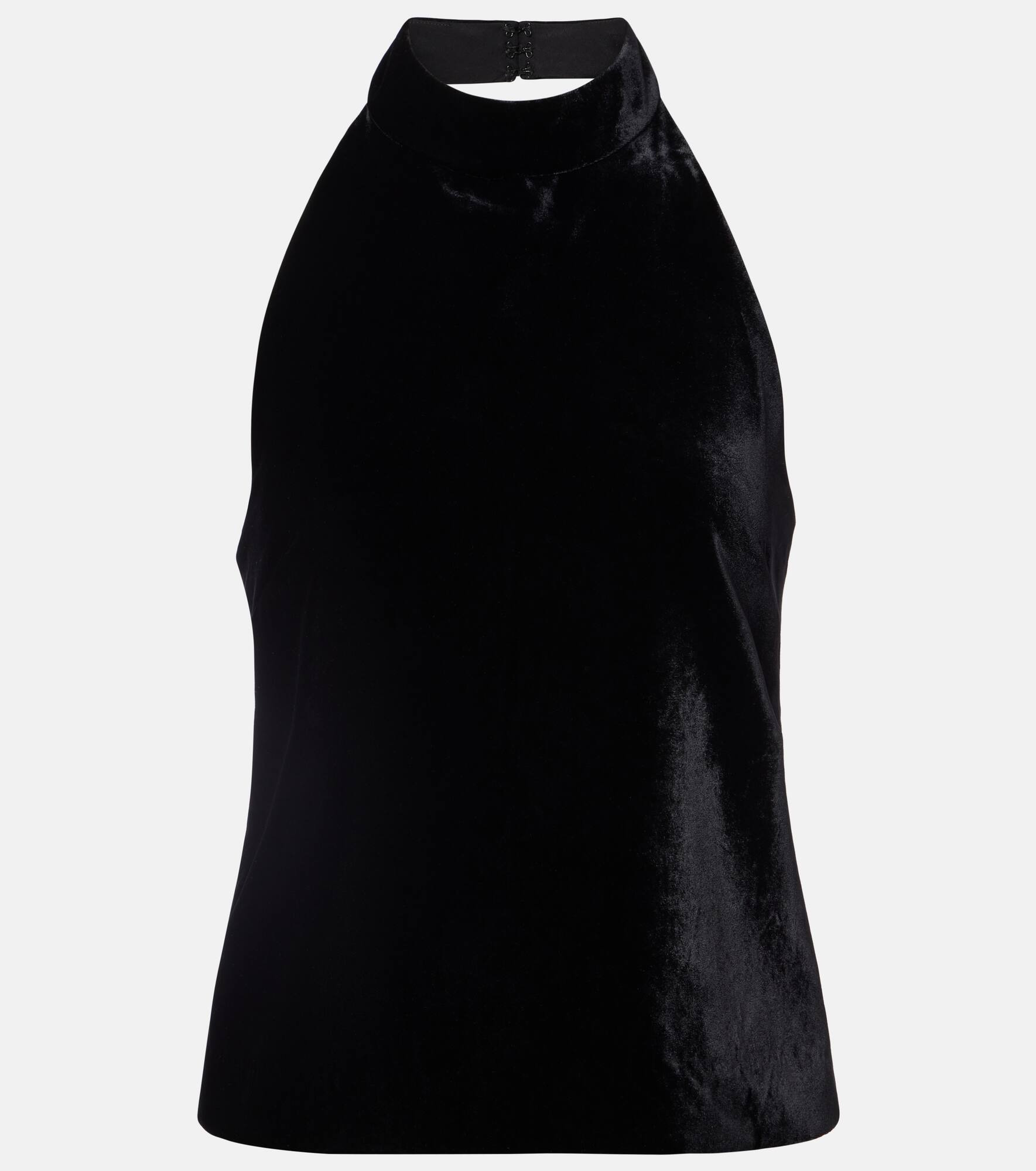 Invest in Nili Lotan's timeless wardrobe staples – where impeccable fit meets sophisticated tailoring. Crafted from fluid velvet, the Peneloppe top features an elegant halterneck silhouette and a concealed zip and hook closure. Product Details - Material: 75% viscose, 25% nylon - Care instructions: dry clean - Made in the USA - Designer color name: Black - Item color: black - Closure: concealed zipped back, hook-fastening back - Item number: P01094153 Size & Fit - True to size - Low back - Straight fit - Non-stretchy fabric - Slightly cropped - The model seen in the picture is 178cm-5'10" and wearing a size US 4