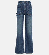 The Quentin jeans by Nili Lotan take inspiration from the silhouettes worn by rock’n’roll icons in the ‘70s. This relaxed-leg denim style features a mid-rise waist and carpenter tabs. Product Details - Material: 98% cotton, 2% polyurethane - Care instructions: machine wash cold - Made in the USA - Designer color name: Classic Wash - Closure: zipper fly, button fastening - Pockets: side slit pockets, back pockets - Item number: P00857026 Size & Fit - True to size - Mid-weight material - Stretchy fabric - Slim-leg with a flared hem - High-rise - The model seen in the picture is 178cm-5'10" and wearing a size 26