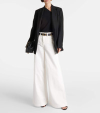 Product Details - Material: 100% cotton - Care instructions: machine wash cold - Made in the USA - Designer color name: Cream - Closure: zipper fly, button fastening - Pockets: five pockets - Item number: P00936972 Size & Fit - True to size - Non-stretchy fabric - Wide-leg - High-rise - The model seen in the picture is 178cm-5'10" and wearing a size 26