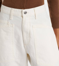 Product Details - Material: 100% cotton - Care instructions: machine wash cold - Made in the USA - Designer color name: Cream - Closure: zip and button fastening - Belt loops - Pockets: five pockets - Item number: P01005947 Size & Fit - True to size - Non-stretchy fabric - Tapered leg - High-rise - The model seen in the picture is 178cm-5'10" and wearing a size 26
