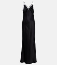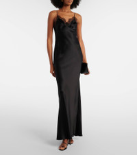 Invest in Nili Lotan's timeless wardrobe staples – where impeccable fit meets sophisticated tailoring. Ideal for elegant soirees and special occasions alike, the Sylas gown is a slip style made from lustrous silk satin and trimmed with precious lace. Product Details - Material: 100% silk - Care instructions: dry clean - Made in the USA - Color: black - Designer color name: Black - Item number: P01124506 Size & Fit - True to size - Cinched waist - Non-stretchy fabric - The model seen in the picture is 178cm-5'10" and wearing a size US 4