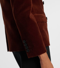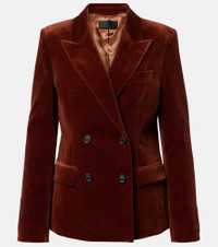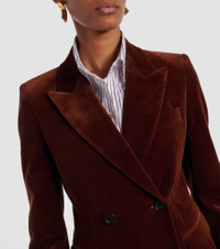 Nili Lotan brings sophistication to timeless wardrobe staples. The Veda blazer is crafted from plush cotton velvet and is impeccably tailored with a double-breasted front, a cinched waist and structural padding at the shoulders. Product Details - Material: 98% cotton, 2% elastane - Care instructions: dry clean - Made in Portugal - Designer color name: Burnt Sienna - Item color: brown - Lining: 100% viscose - Pocket lining: 100% cotton - Peak lapel - Shoulder pads - Pockets: ticket pocket, flap pockets, internal pocket - Cuff: four buttons - Closure: double-breasted (four buttons) - Vent: single - Fully lined - Item number: P01094132 Size & Fit - True to size - Shoulder pad inserts - Cinched waist - Non-stretchy fabric - Falls below the hip - The model seen in the picture is 178cm-5'10" and wearing a size US 4
