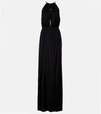 Invest in Nili Lotan's timeless wardrobe staples – where impeccable fit meets sophisticated design. The floor-grazing Vesper maxi dress has a keyhole cutout at the neck and a loose, flowy silhouette. Product Details - Material: 100% viscose - Care instructions: dry clean - Made in the USA - Designer color name: Black - Item color: blue - Self-tie collar - Item number: P01076363 Size & Fit - True to size - Low back - Loose fit, elasticated waist - Stretchy fabric - The model seen in the picture is 178cm-5'10" and wearing a size XS