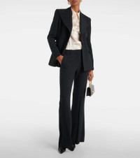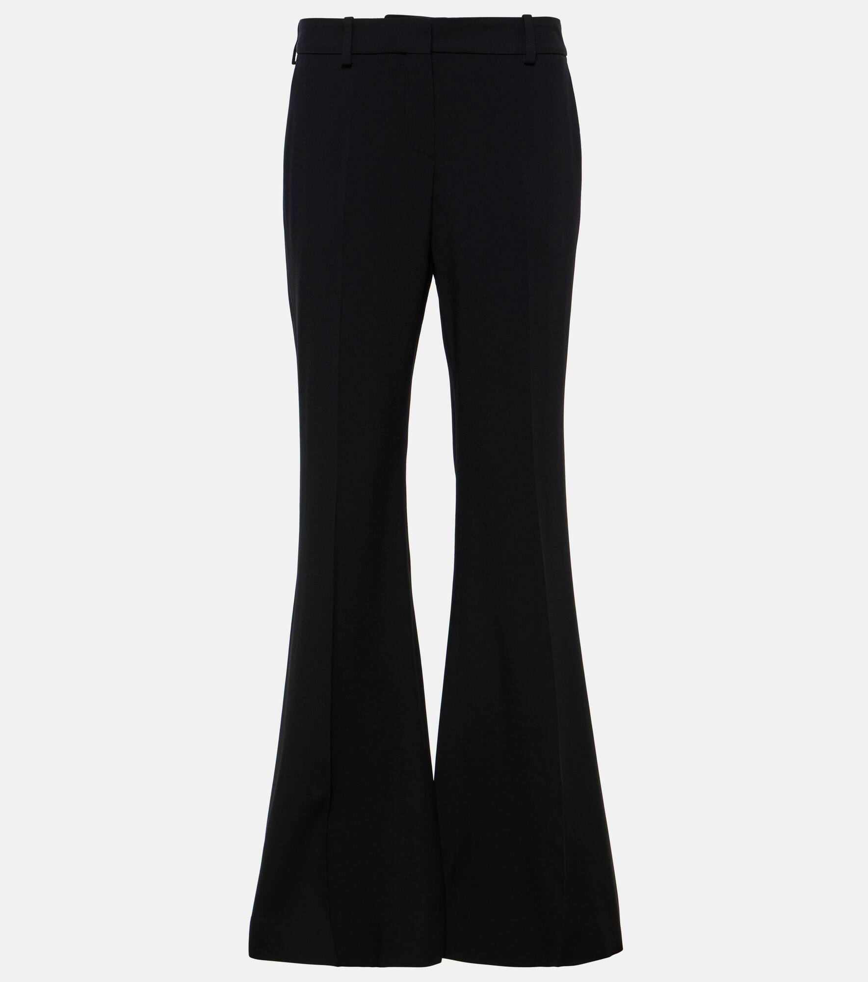 Product Details - Material: 74% acetate, 26% viscose - Care instructions: do not wash - Made in Romania - Designer color name: Black - Closure: zipper fly, button and hook fastenings - Belt loops - Pockets: side slit pockets, back pockets - Lining: 100% viscose - Item number: P00904218 Size & Fit - True to size - Non-stretchy fabric - Slim-leg with a flared hem - High-waisted - The model seen in the picture is 178cm-5'10" and wearing a size FR 36