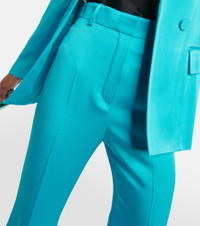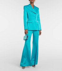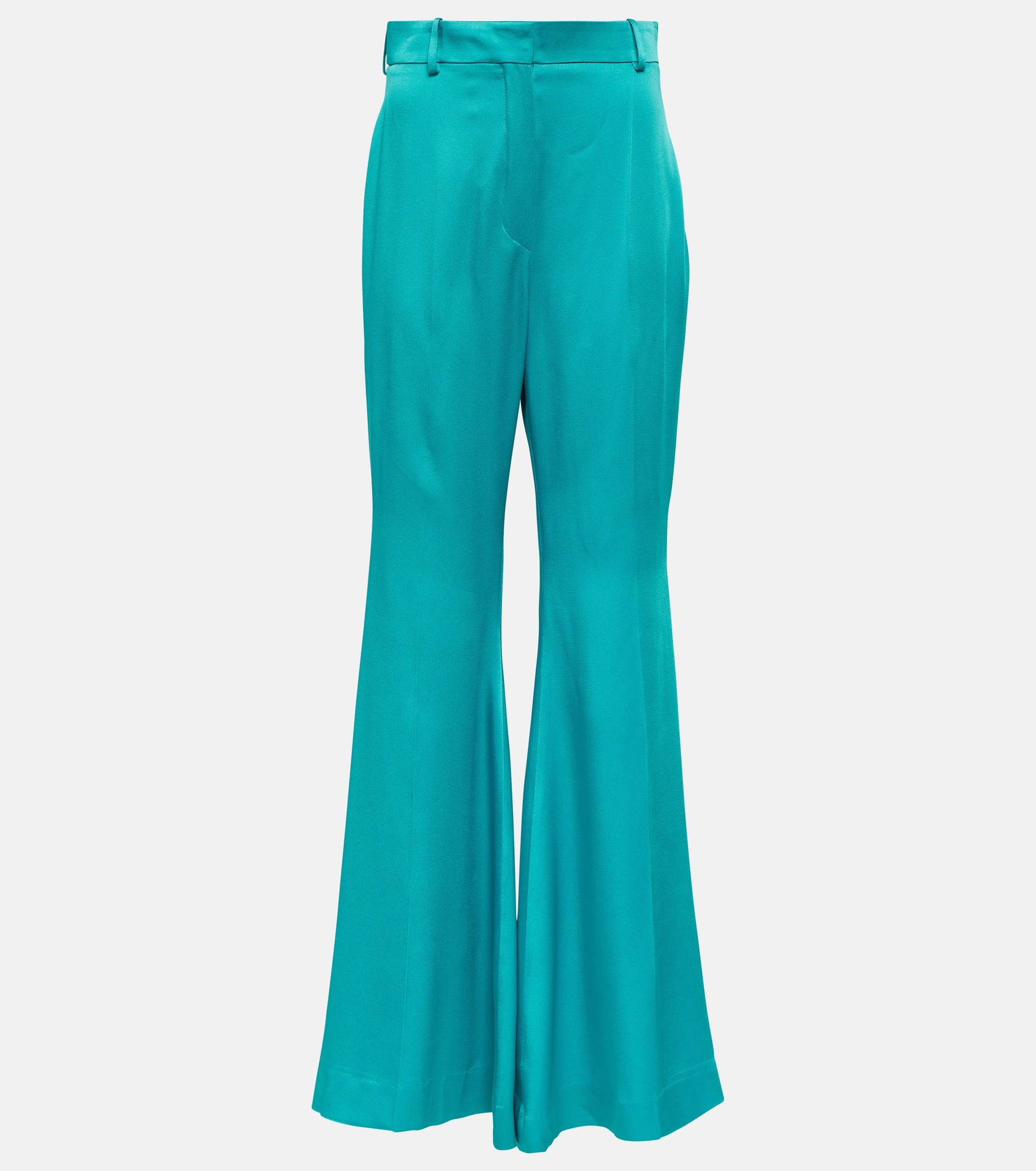 Nina Ricci displays a playful penchant for proportions with these wide-leg pants. Made of aquatic blue satin, this high-rise style pushes tailored traditions with dramatic flared legs, secured with a hook fly. Product Details - Material: 74% acetate, 26% viscose - Care instructions: dry clean - Made in Romania - Material II: 100% viscose - Closure: zipper, hook fastening - Item number: P00842911 Size & Fit - True to size - Best fit for a slightly wider waist - Mid-weight material - Slim-leg with a flared hem - High-waisted - The model seen in the picture is 178cm-5'10" and wearing a size FR 36