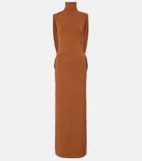 Effortlessly transition throughout the day in this maxi dress by Nina Ricci. The high-neck style features a tight-fitted silhouette made from stretchy jersey. Product Details - Material: 94% viscose, 6% elastane - Care instructions: dry clean - Made in Portugal - Designer color name: Chocolat Brown - Item color: brown - Item number: P01069403 Size & Fit - True to size - Close fit at the neck - Low back - Fitted - Stretchy fabric - The model seen in the picture is 178cm-5'10" and wearing a size FR 36