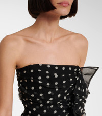 Product Details - Material: 100% silk - Care instructions: dry clean - Made in Poland - Designer color name: Polka Dots Black And Cream - Material II: 100% silk - Material III: 82% polyamide, 18% elastane - Lining: 57% viscose, 43% polyester - Closure: concealed zipper - Item number: P01016342 Size & Fit - True to size - Petite sizing - Strapless - Fitted - Non-stretchy fabric - The model seen in the picture is 178cm-5'10" and wearing a size FR 36