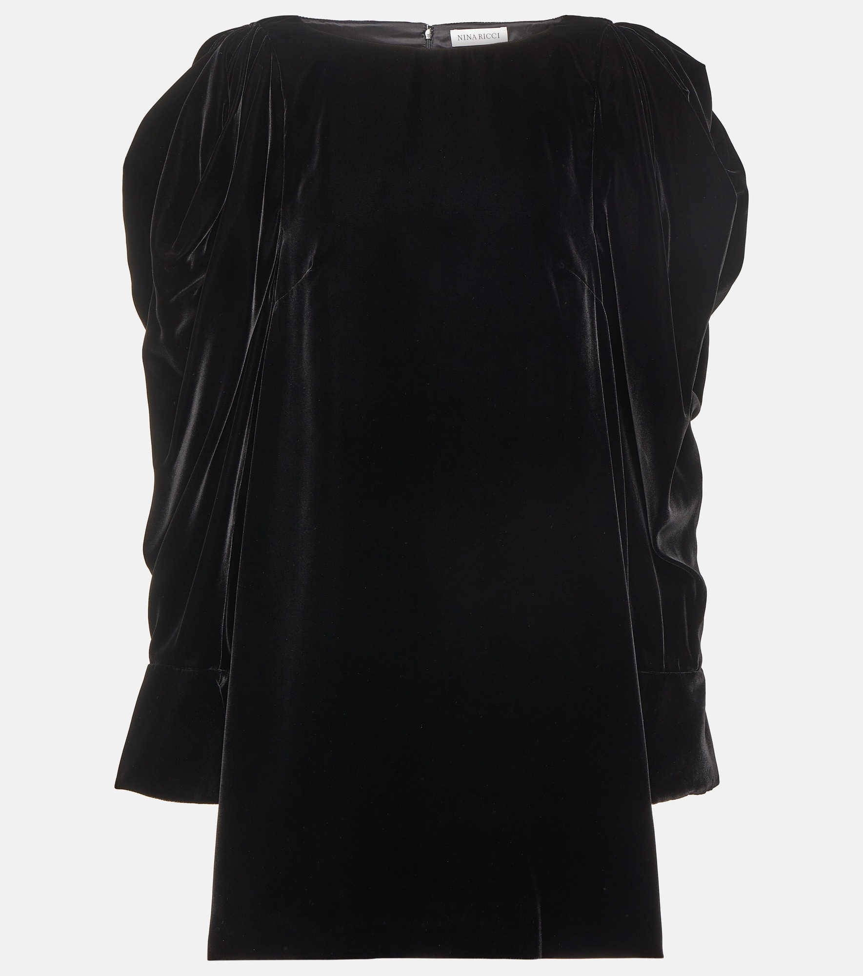 Designed with exaggerated puff sleeves, this velvet minidress from Nina Ricci is a perfect pick for night-outs and cocktail parties. Pair it with strappy stilettos for an all-out glam look. Product Details - Material: 50% viscose, 50% cupro - Care instructions: dry clean - Made in Poland - Designer color name: Black - Lining: 100% viscose - Closure: zipped back - Item number: P00842928 Size & Fit - Fits large to size - we recommend trying one size smaller - Designed for a loose fit - Mid-weight material - The model seen in the picture is 178cm-5'10" and wearing a size FR 34