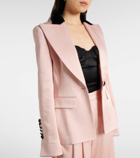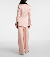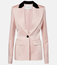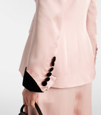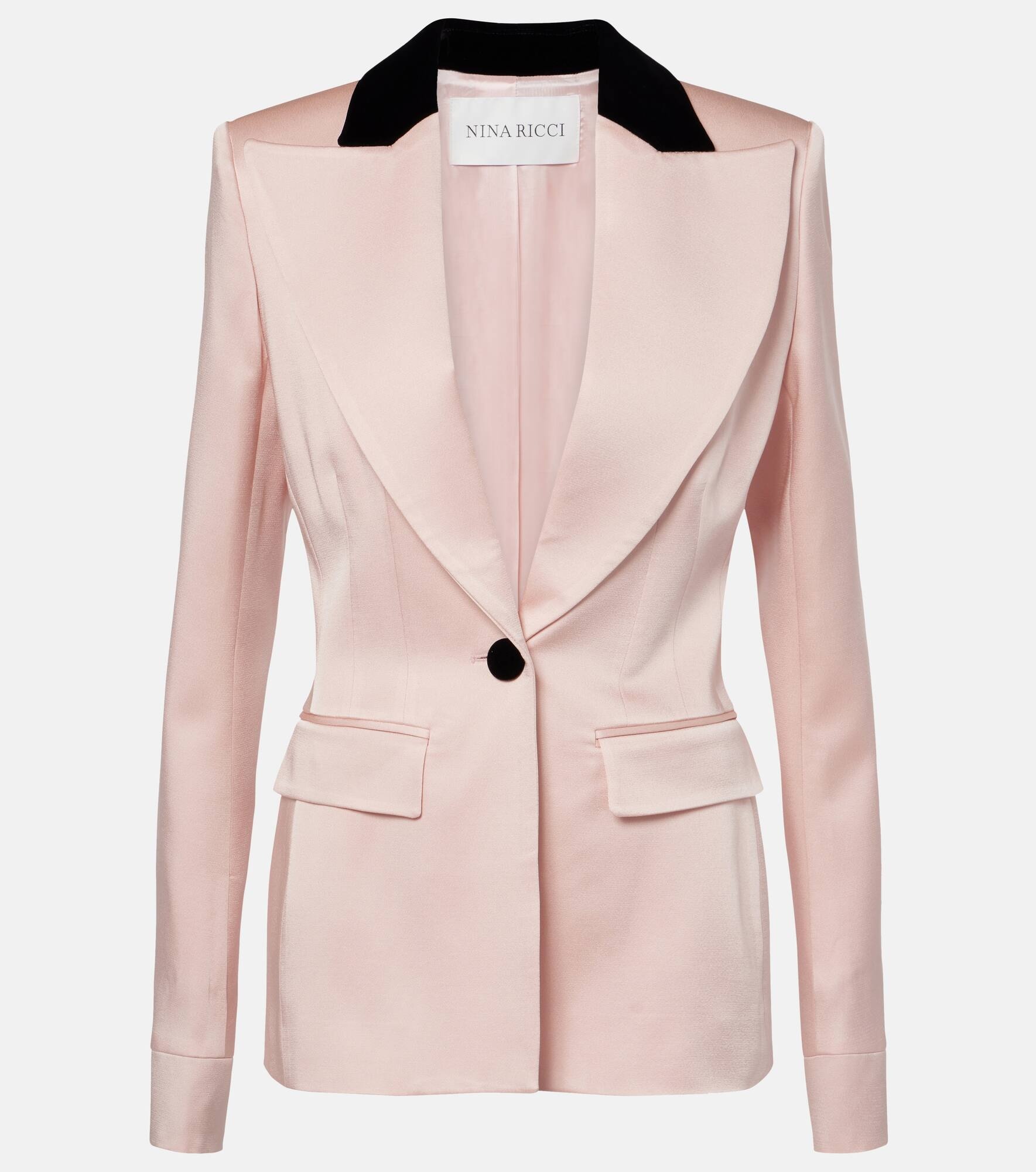 Product Details - Material: 74% acetate, 26% viscose - Care instructions: dry clean - Made in Romania - Designer color name: Blush - Lining: 99.9% viscose - Closure: double-breasted buttoned front - Pockets: flap pockets - Item number: P01016352 Size & Fit - True to size - Oversized shoulders - Shoulder pad inserts - Cinched waist - Non-stretchy fabric - Falls below the hip - The model seen in the picture is 178cm-5'10" and wearing a size FR 36
