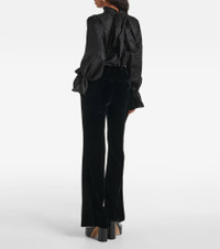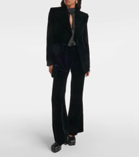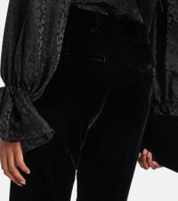 Product Details - Material: 69% viscose, 31% cupro - Care instructions: dry clean - Made in Romania - Designer color name: Black - Material II: 100% viscose - Closure: zipper fly, button and hook fastenings - Pockets: side slit pockets, back pockets - Item number: P00904221 Size & Fit - Fits small to size - we recommend trying one size larger - Non-stretchy fabric - Slim-leg with a flared hem - The model seen in the picture is 178cm-5'10" and wearing a size FR 38