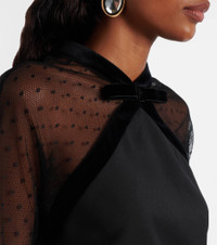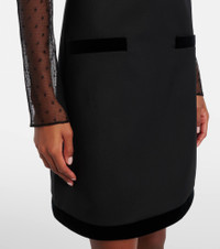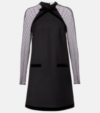 A skillful play of structure and proportion ensures the house of Nina Ricci remains a tastemaker for Parisian style. Crafted from virgin wool gabardine, this minidress stands out with velvet-trimmed edges and point d’esprit tulle sleeves. Product Details - Material: 100% virgin wool - Care instructions: dry clean - Made in Poland - Designer color name: Black - Item color: black - Material II: 100% cotton - Material III: 100% polyamide - Material IV: 100% polyamide - Details: 100% polyamide - Lining: 100% viscose - Pockets: faux pockets - Closure: concealed zipped back, hook-fastening back - Item number: P01069383 Size & Fit - True to size - Straight fit - Non-stretchy fabric - The model seen in the picture is 178cm-5'10" and wearing a size FR 36