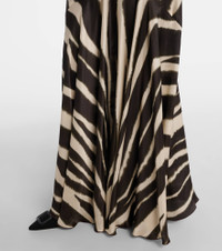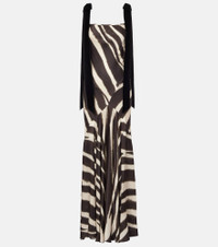 This zebra-print gown by Nina Ricci appears with Italian-infused elegance. Crafted from lustrous satin, this piece features an open back and self-ties at the shoulders. Product Details - Material: 70% viscose, 30% silk - Care instructions: dry clean - Made in Poland - Designer color name: Zebre - Item color: white, brown - Material II: 100% polyamide - Item number: P01069379 Size & Fit - True to size - Cinched waist - Non-stretchy fabric - The model seen in the picture is 178cm-5'10" and wearing a size FR 36