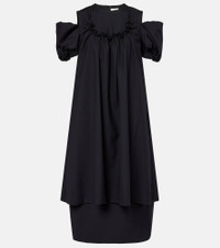 This midi dress from Noir Kei Ninomiya strikes a perfect balance between elegance and creativity. Made from pure wool, the layered design is enriched with gathered detailing at the front and puff sleeves with cutouts at the shoulders. Product Details - Material: 100% wool - Care instructions: dry clean - Made in Japan - Designer color name: Black - Item color: black - Lining: 100% cupro - Pockets: side slit pockets - Closure: zipped back - Item number: P01042892 Size & Fit - True to size - Designed for a loose fit - Non-stretchy fabric - The model seen in the picture is 178cm-5'10" and wearing a size XS