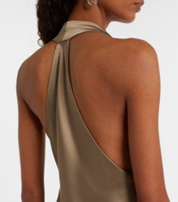 Steal the show at your next event in Norma Kamali's Bias gown. The style is made from lustrous satin for a captivating shine effect and features a draped, halterneck silhouette. Product Details - Material: 100% polyester - Care instructions: hand wash - Made in China - Designer color name: Elm - Item color: beige - Item number: P01098466 Size & Fit - True to size - Low back - Cinched waist - Non-stretchy fabric - The model seen in the picture is 178cm-5'10" and wearing a size XS