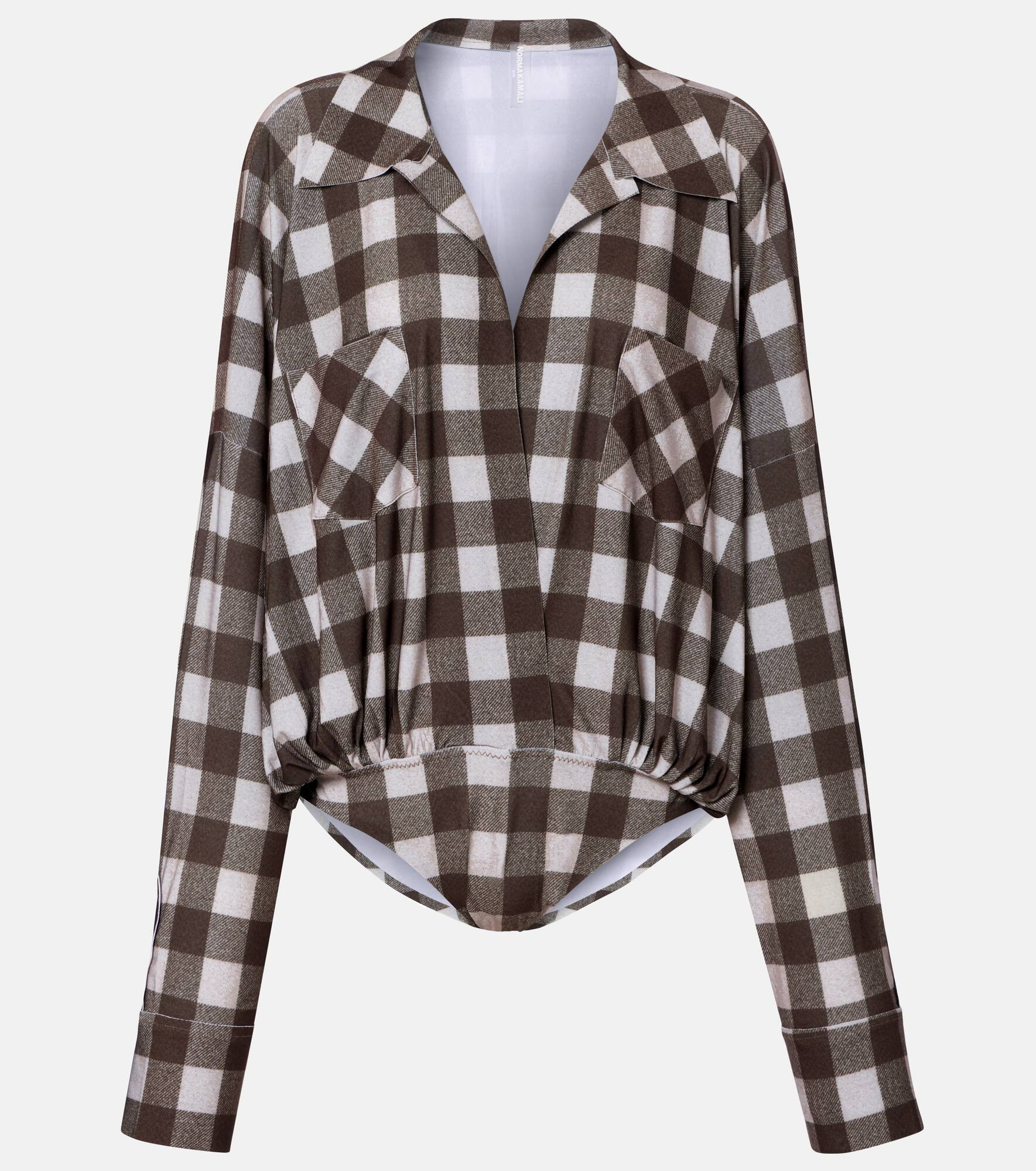 This bodysuit from Norma Kamali is cut from a four-way stretch fabric to an oversized fit. The design is detailed in a checked pattern throughout, and features two patch pockets on the front. Product Details - Material: 95% polyester, 5% elastane - Care instructions: machine wash cold - Made in China - Designer color name: Bark Box Plaid - Item color: green, white - Closure: VELCRO® fastening, snap-buttoned fastenings - Item number: P01098471 Size & Fit - Fits large to size - we recommend trying one size smaller - Dropped shoulders - Oversized - Stretchy fabric - Medium-cut leg - The model seen in the picture is 178cm-5'10" and wearing a size XXS