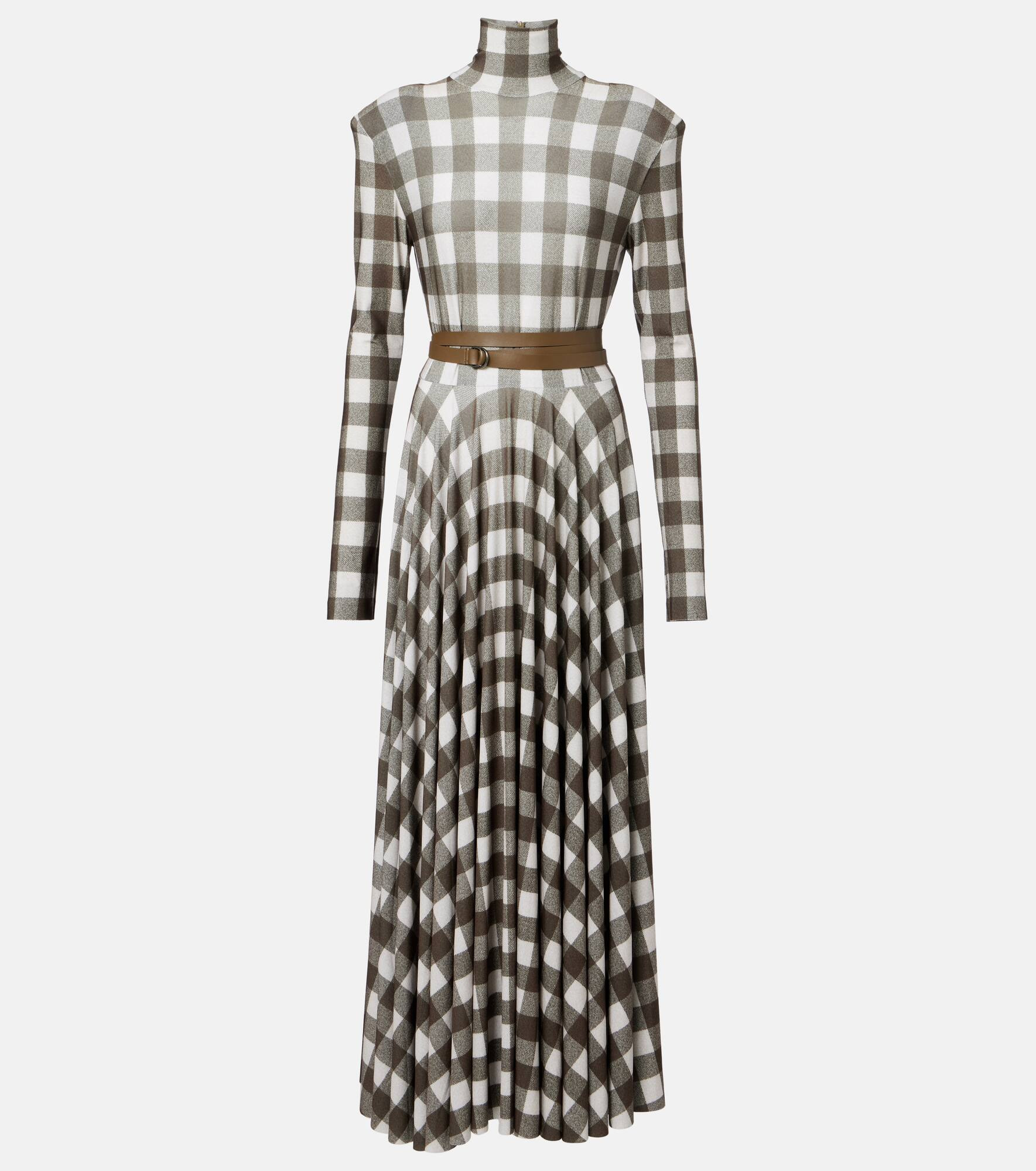 Checked turtleneck jersey midi dress
