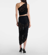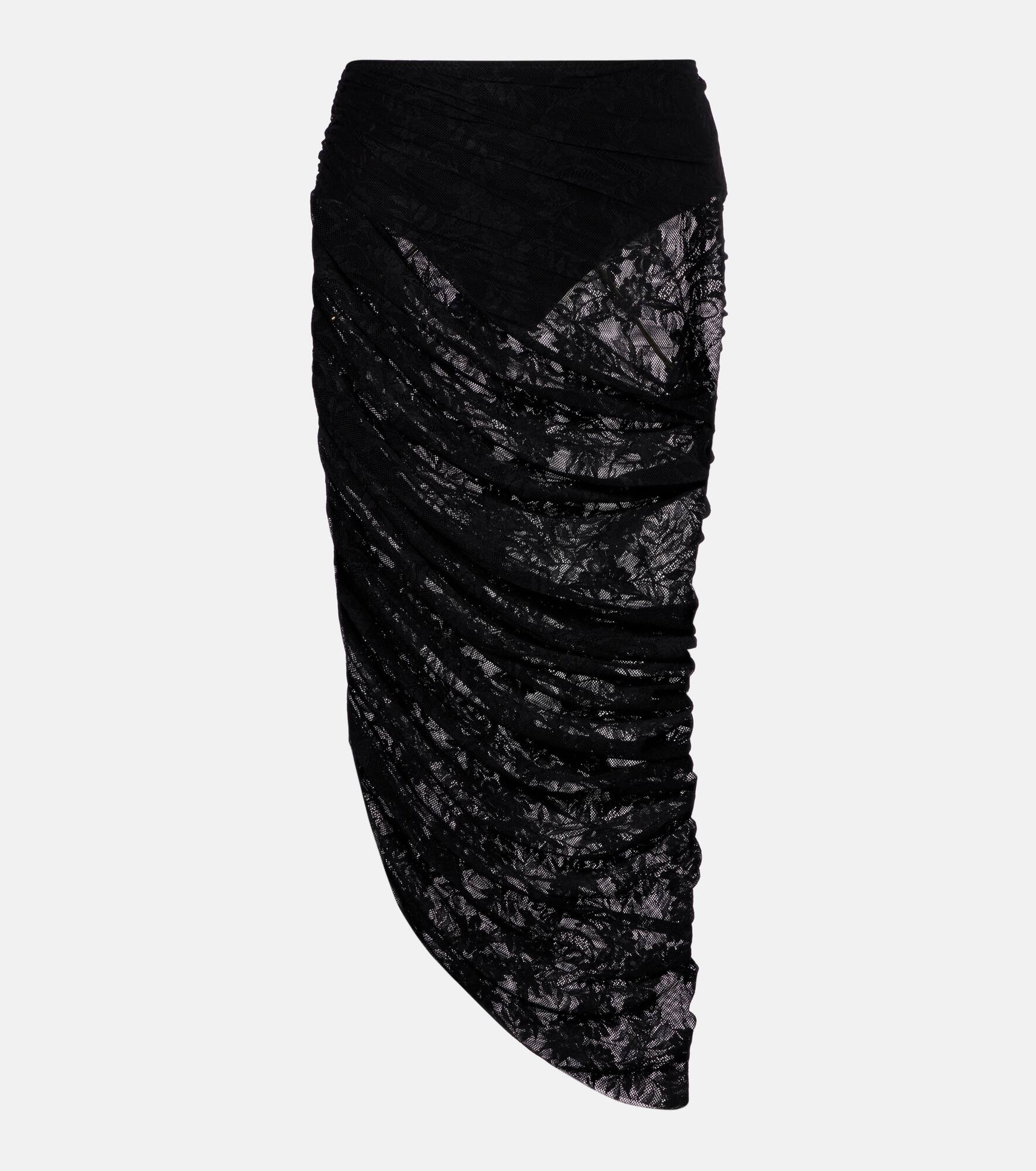 The Diana midi skirt by Norma Kamali is crafted from delicate floral lace for an elegant, romantic effect. Cut to an asymmetric silhouette, the piece reflects the brand’s signature blend of sophistication and playful edge. Product Details - Material: 81% nylon, 19% elastane - Care instructions: machine wash cold - Made in China - Designer color name: Black Stretch Floral Lace Excl - Item color: black - Lining: 95% polyester, 5% elastane - Item number: P01112362 Size & Fit - True to size - Semi-sheer - Fitted - Stretchy fabric - Medium-cut leg - The model seen in the picture is 178cm-5'10" and wearing a size XS
