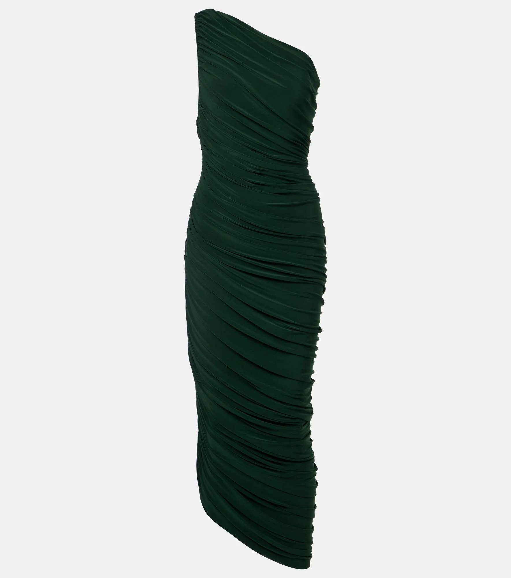 Norma Kamali's playful approach to design has taken the world by storm since the 1960s. Rendered in a deep emerald green hue, the Diana gown features a one-shoulder, fitted silhouette with an asymmetrical hem and all-over ruching. Product Details - Material: 95% polyester, 5% elastane - Care instructions: dry clean - Made in China - Color: green - Designer color name: Dark Emerald - Item color: green - Hem: uneven - Item number: P01127748 Size & Fit - True to size - Fitted - Slightly stretchy fabric - Medium-cut leg - The model seen in the picture is 178cm-5'10" and wearing a size XS