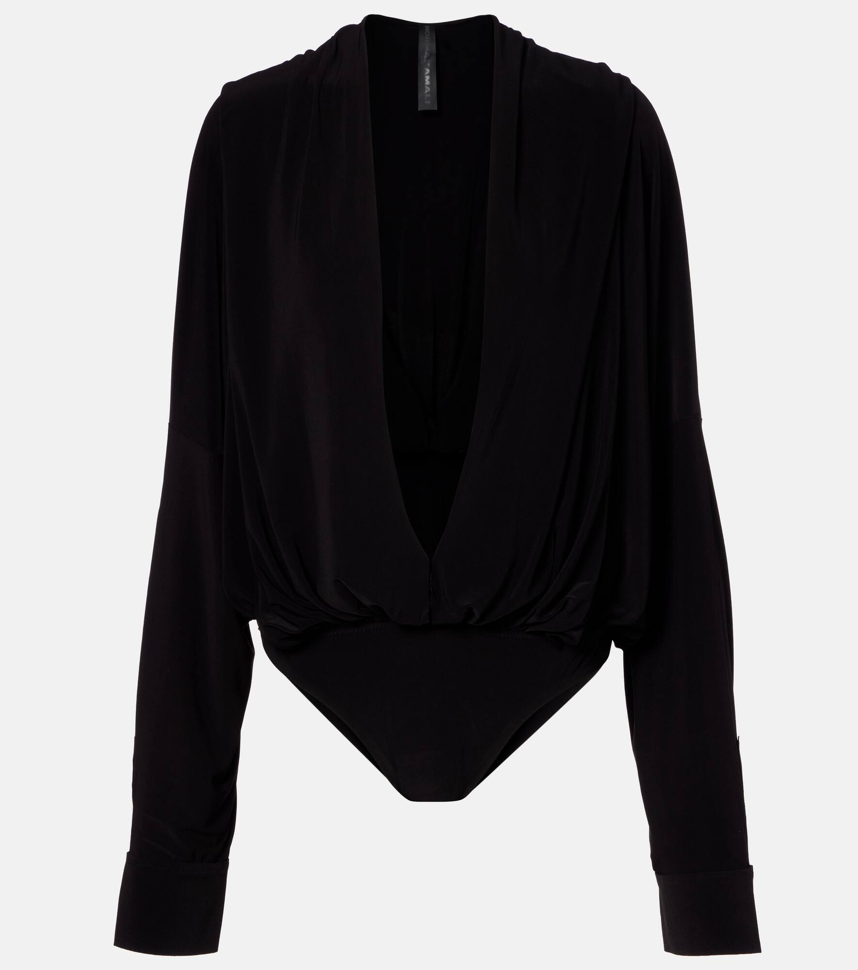 Award-winning designer Norma Kamali's playful approach to design has taken the world by storm since the 1960s. This hooded bodysuit boasts a draped silhouette and is finished with a plunging neckline. Product Details - Material: 95% polyester, 5% elastane - Care instructions: hand wash cold - Made in China - Designer color name: Black - Item color: black - Hem: elasticated - Closure: snap-buttoned fastenings - Item number: P01112305 Size & Fit - True to size - Designed for a loose fit - Stretchy fabric - High-cut leg - The model seen in the picture is 178cm-5'10" and wearing a size XS