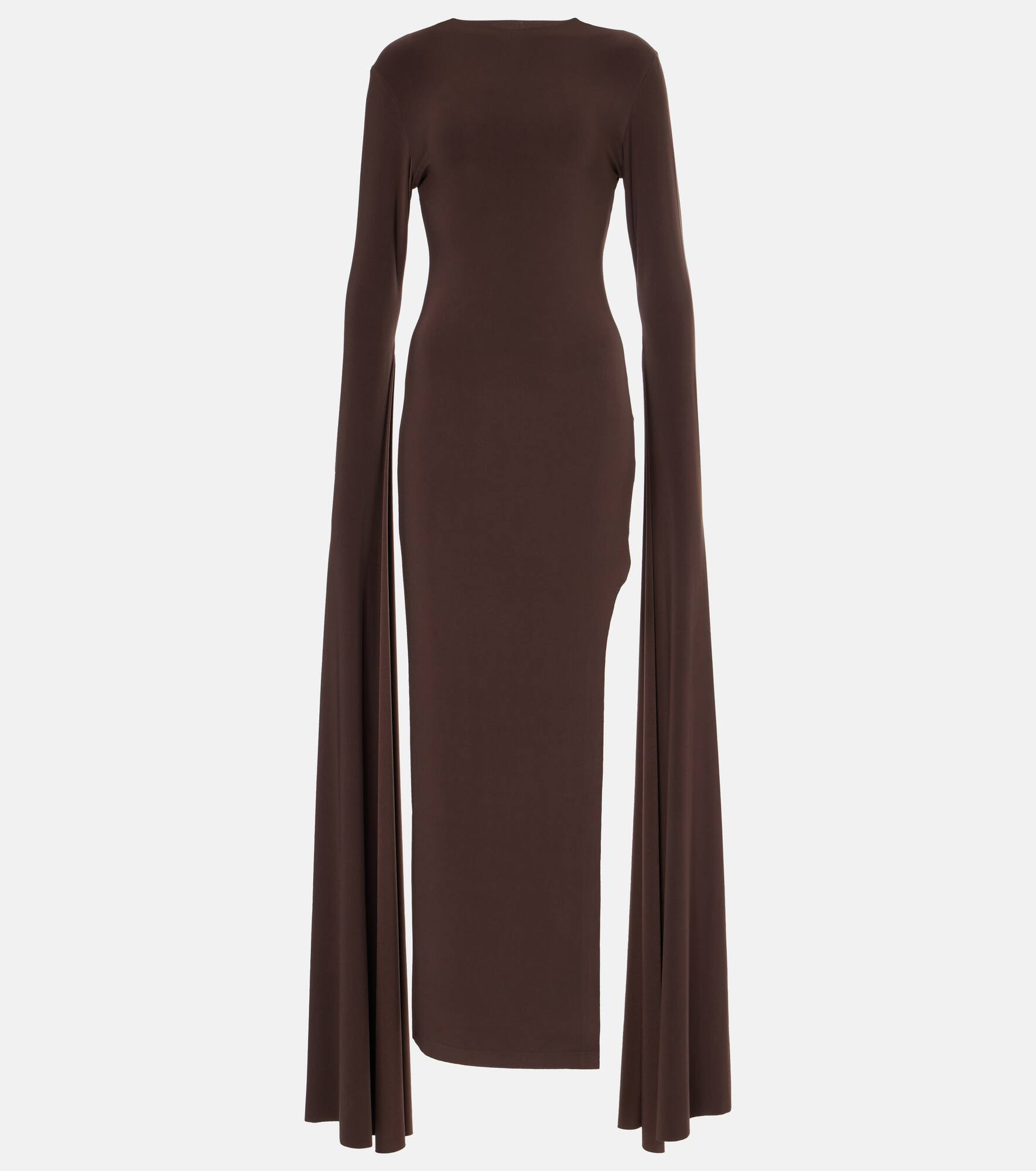 Product Details - Material: 95% polyester, 5% elastane - Care instructions: dry clean - Made in China - Designer color name: Choco - Item number: P00991663 Size & Fit - True to size - Extra-long sleeves - Low back - Fitted - Stretchy fabric - slit length 76cm-30" - The model seen in the picture is 178cm-5'10" and wearing a size XS