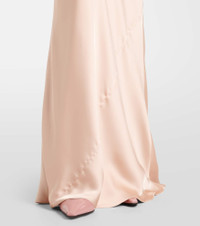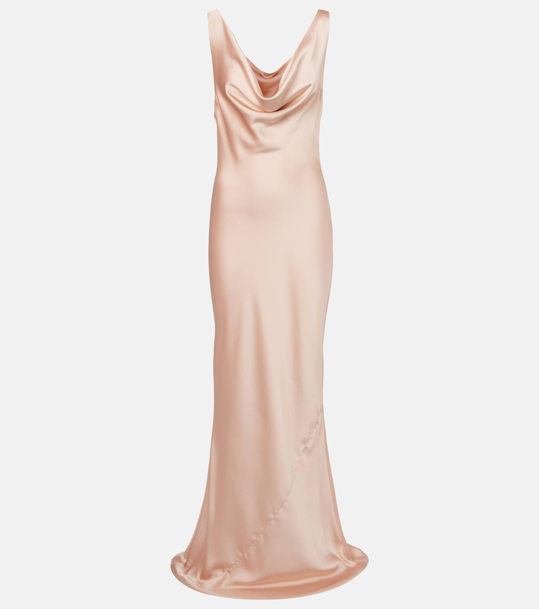 Award-winning designer Norma Kamali's playful approach to design has taken the world by storm since the 1960s. This satin gown features a softly draped neckline and unfolds to the floor for a timelessly elegant look. Product Details - Material: 100% polyester - Care instructions: hand wash - Made in China - Designer color name: Baby - Item color: pink - Item number: P01054077 Size & Fit - True to size - Cinched waist - Non-stretchy fabric - The model seen in the picture is 178cm-5'10" and wearing a size XS