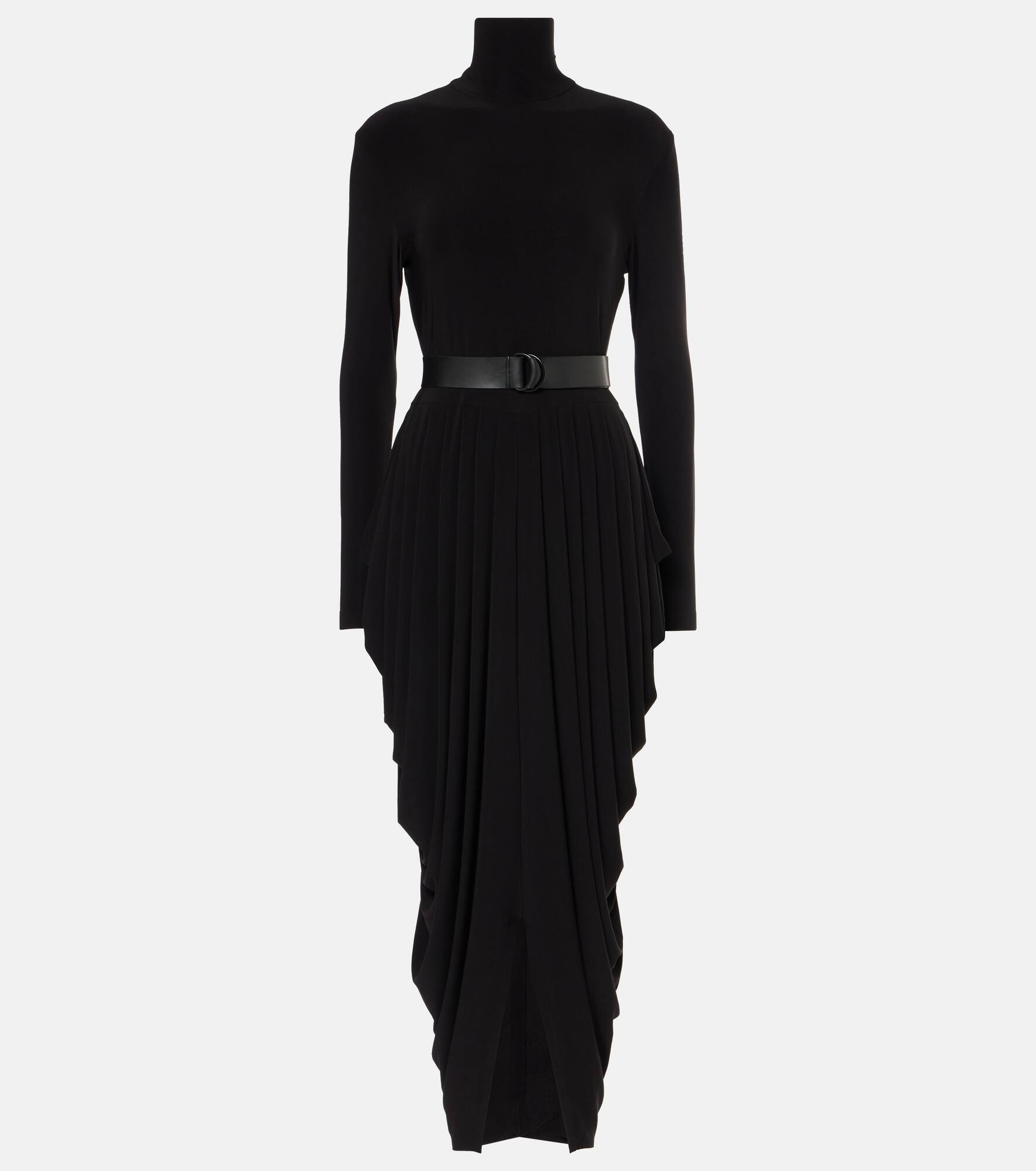 Product Details - Material: 95% polyester, 5% elastane - Care instructions: machine wash cold - Made in China - Designer color name: Black - Attached belt - Collar: turtleneck - Item number: P00991097 Size & Fit - True to size - Dropped shoulders - Cinched waist - Stretchy fabric - slit length 34,0cm-13.5" - The model seen in the picture is 178cm-5'10" and wearing a size XS