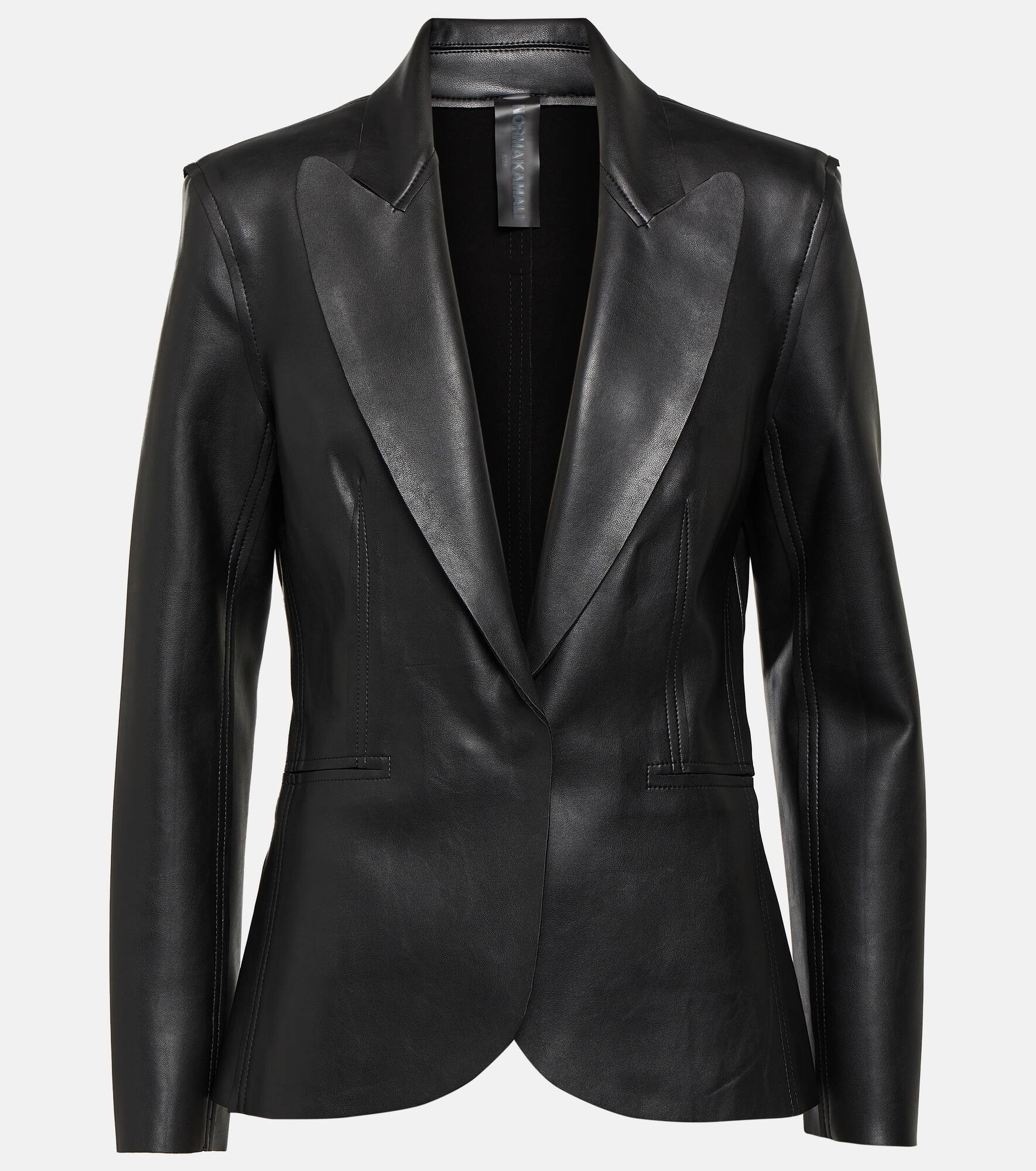 Complete your elegant edit with this single-breasted blazer from Norma Kamali. Made from faux leather, the style features notched lapels and shoulder pads for a chic touch. Product Details - Material II: 90% polyester, 5% elastane - Made in China - Closure: VELCRO® fastening - Designer color name: Black - Material: 100% polyurethane - Care instructions: machine wash cold - Pockets: welt pockets - Item number: P00842188 Size & Fit - True to size - Oversized shoulders - Shoulder pad inserts - Cinched waist - Slightly stretchy fabric - Falls below the hip - The model seen in the picture is 178cm-5'10" and wearing a size XS
