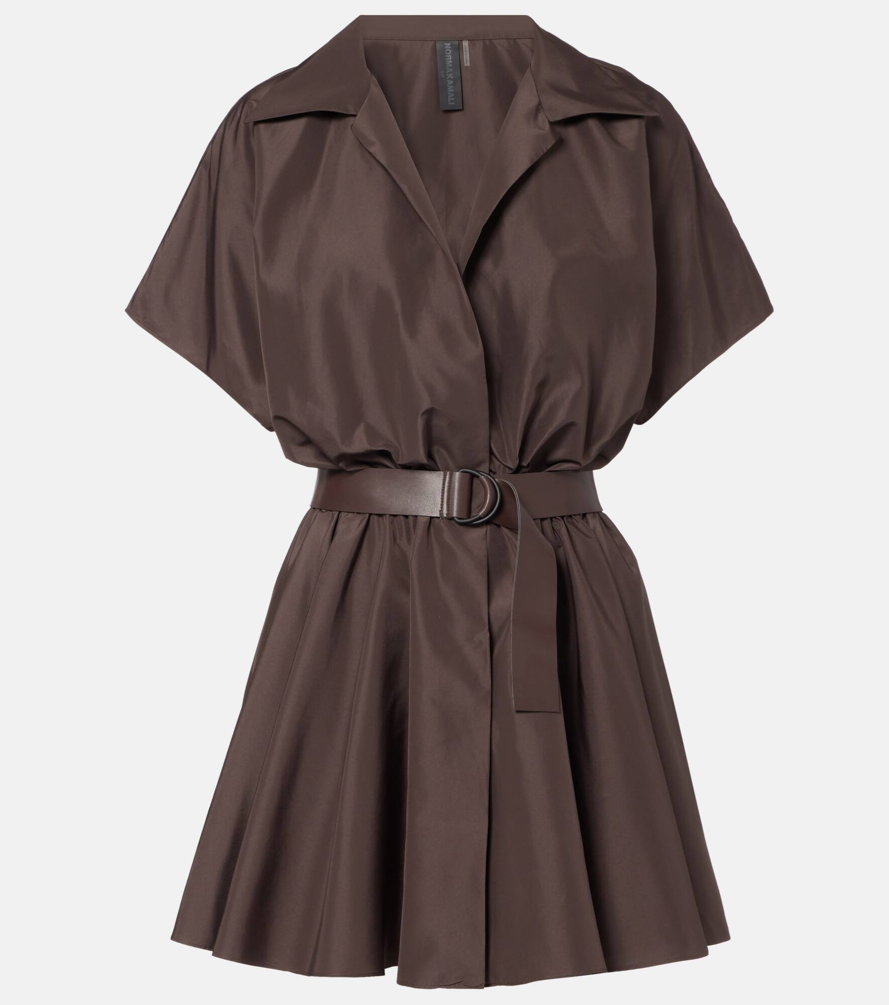Award-winning designer Norma Kamali's playful approach to design has taken the world by storm since the 1960s. The flared minidress has a loose fit, an elasticated waist, and a detachable belt. Product Details - Material: 100% polyester - Care instructions: machine wash cold - Made in China - Designer color name: Chocolate - Item color: brown - Detachable belt - Closure: VELCRO® fastening - Item number: P01096444 Size & Fit - True to size - For a closer fit, we recommend taking one size down - Loose fit, comes with belt - Oversized - Non-stretchy fabric - The model seen in the picture is 178cm-5'10" and wearing a size XS