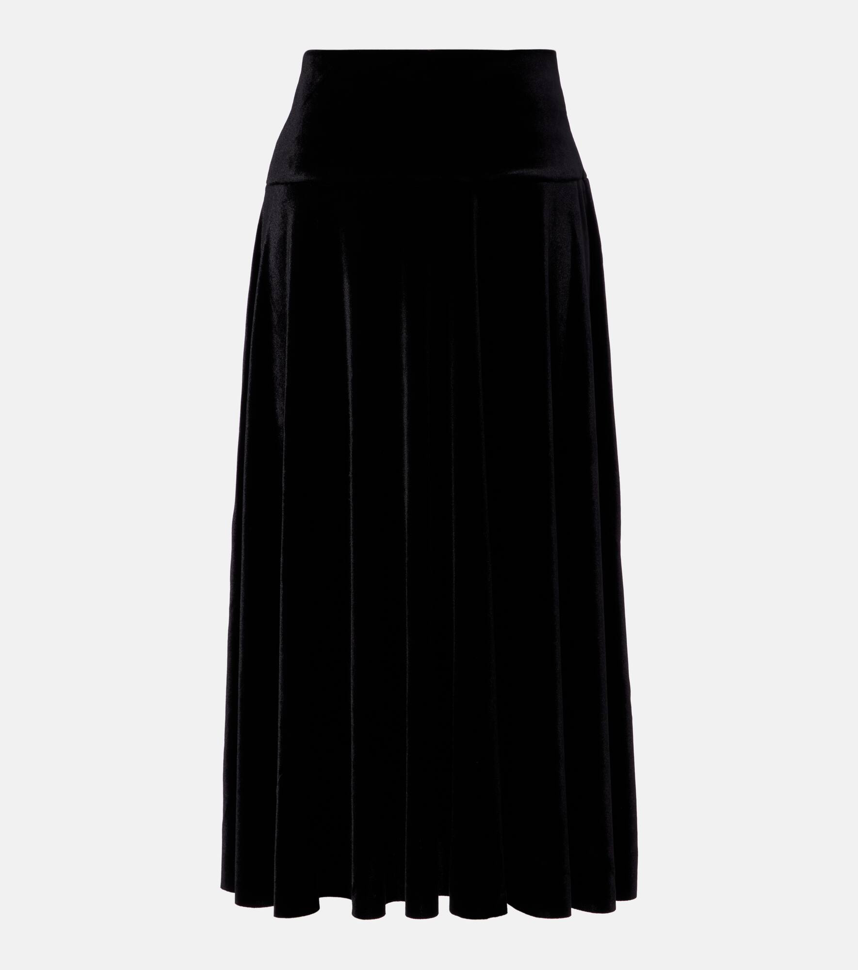Flared pleated velvet midi skirt