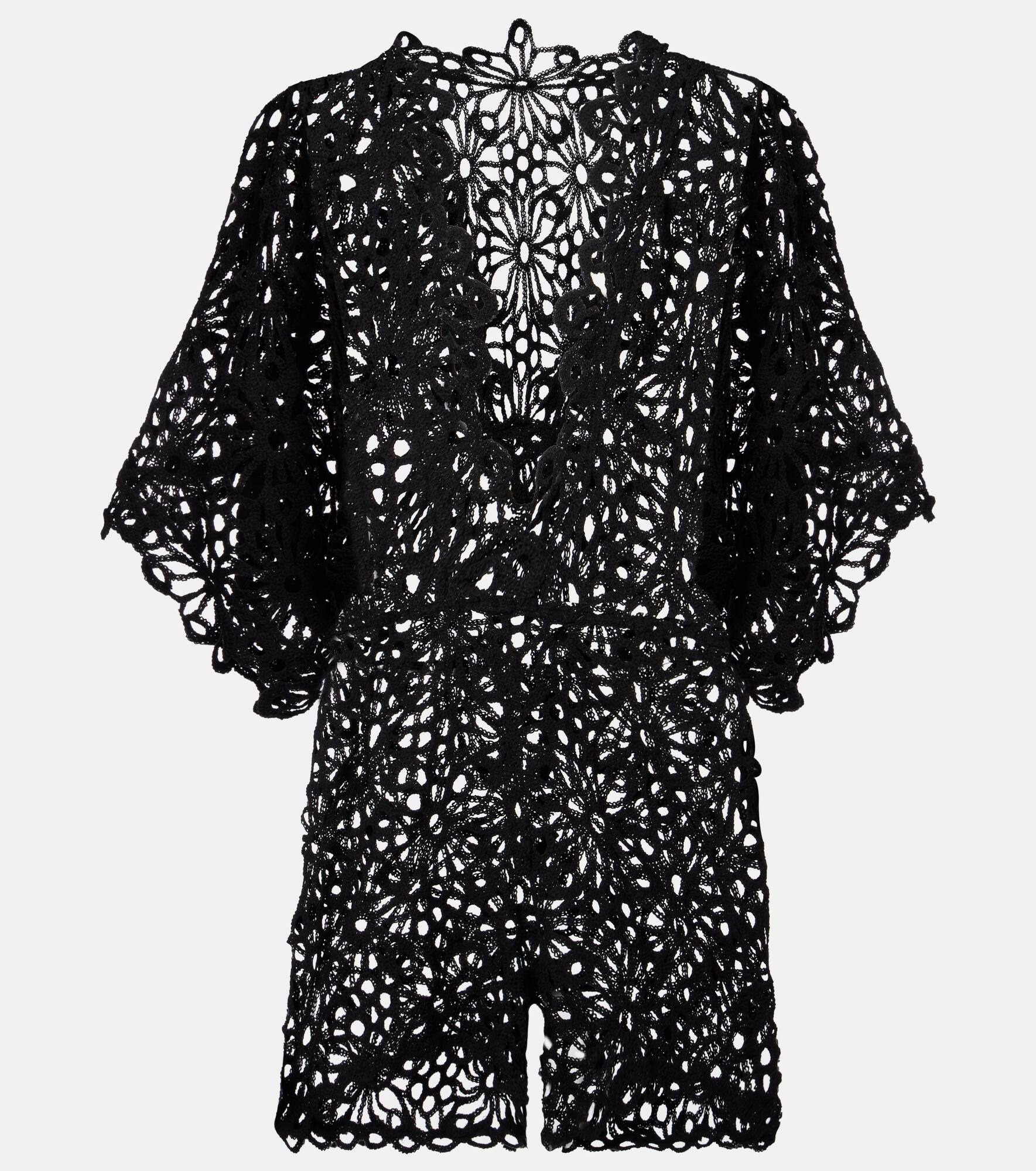 Floral open-knit romper