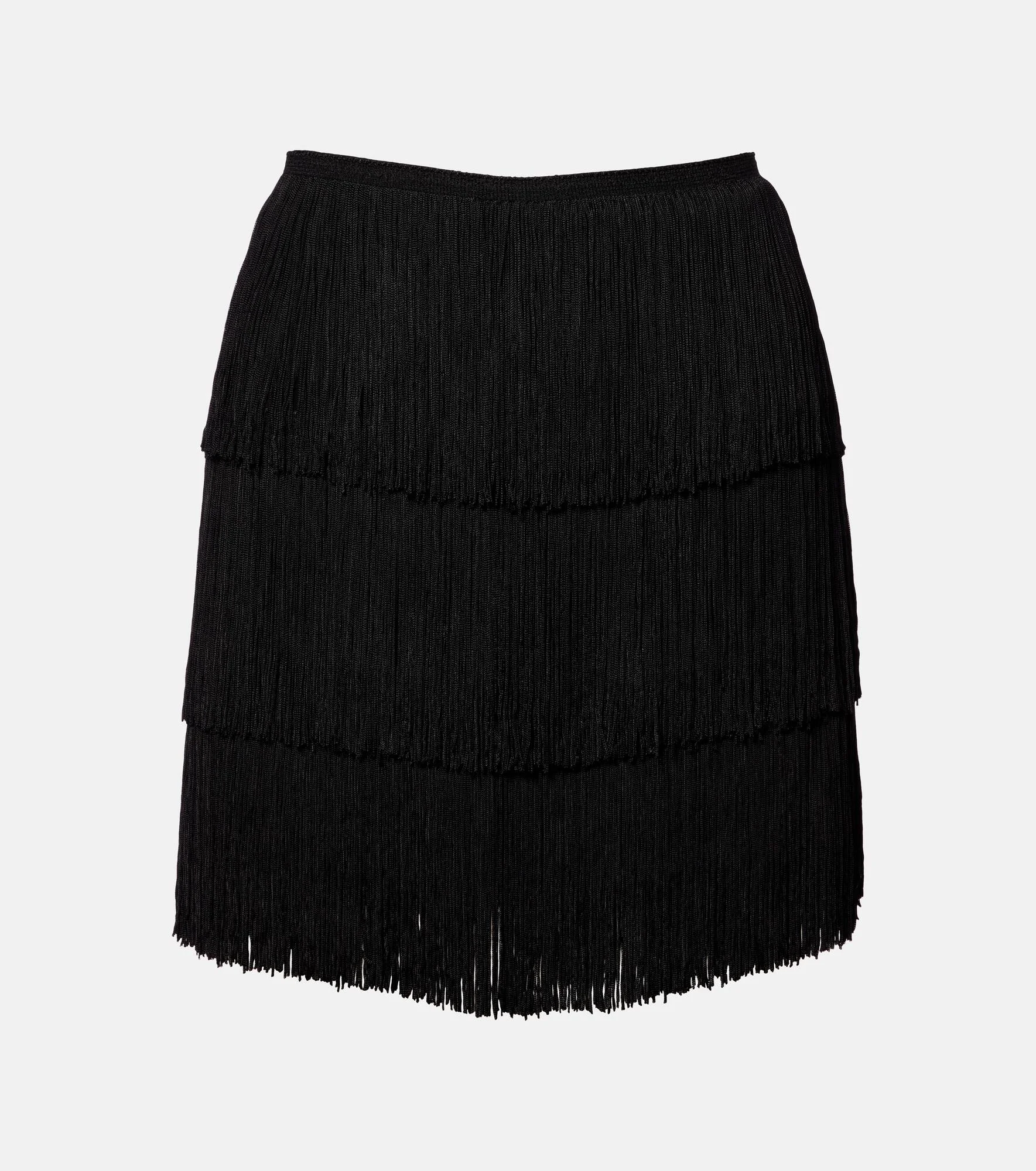 Award-winning designer Norma Kamali's playful approach to design has taken the world by storm since the 1960s. This miniskirt is characterized by its high-rise waistline and tiers of fringes. Product Details - Material: 95% polyester, 5% elastane - Care instructions: hand wash cold - Made in China - Designer color name: Black - Item color: black - Trim: 100% rayon - Elasticated waistband - Item number: P01124258 Size & Fit - True to size - Stretchy fabric - The model seen in the picture is 178cm-5'10" and wearing a size XS