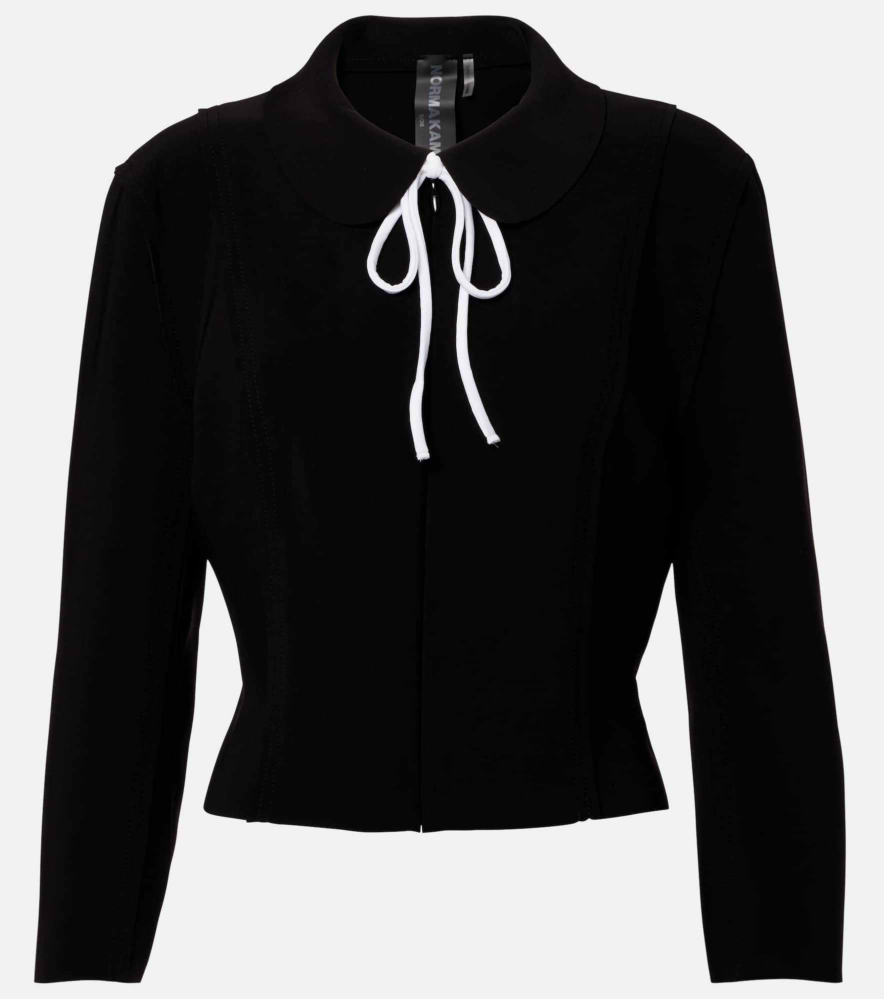 Award-winning designer Norma Kamali's playful approach to design has taken the world by storm since the 1960s. The waist-length Girl jacket features a slim fit, complemented by a rounded collar, removable white self-tie, and zipper closure. Product Details - Material: 95% polyester, 5% elastane - Care instructions: machine wash at 30 degrees - Made in China - Designer color name: Black - Item color: black - Item number: P01063780 Size & Fit - True to size - Cinched waist - Stretchy fabric - Slightly cropped - The model seen in the picture is 178cm-5'10" and wearing a size XS
