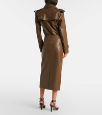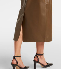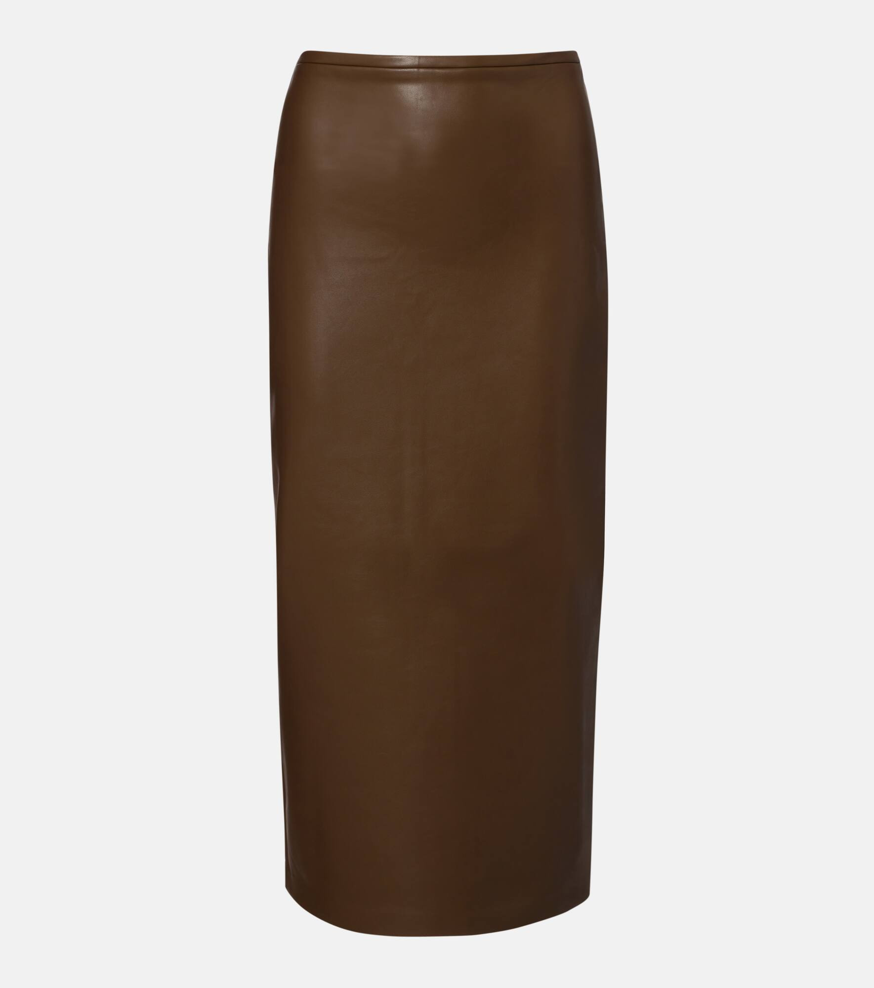 Award-winning designer Norma Kamali's playful approach to design has taken the world by storm since the 1960s. This midi skirt boasts a high-rise waist and a classic, 5-pocket silhouette. Product Details - Material: 100% polyurethane - Care instructions: hand wash - Made in China - Designer color name: Bark - Item color: green - Material II: 95% polyester, 5% elastane - Closure: invisible zipper - Short vent - Item number: P01098477 Size & Fit - True to size - Slightly stretchy fabric - High-waisted - slit length 29cm-11.5" - The model seen in the picture is 178cm-5'10" and wearing a size XS