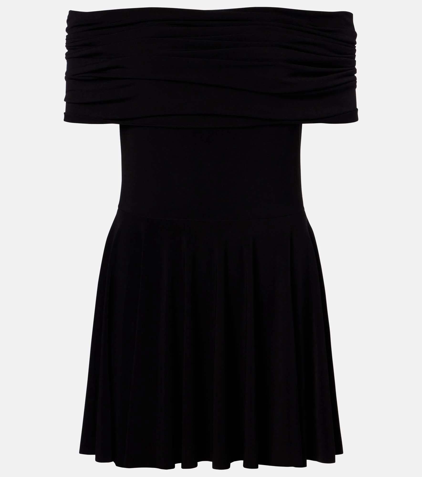 This chic minidress from Norma Kamali can be worn both off the shoulders and with a cowl neckline. The fit-and-flare style is made from soft jersey and features a built-in bodysuit. Product Details - Material: 95% polyester, 5% elastane - Care instructions: hand wash cold - Made in China - Color: black - Designer color name: Black - Item number: P01163789 Size & Fit - Fits large to size - we recommend trying one size smaller - Off-the-shoulder - Cinched waist - Stretchy fabric - Medium-cut leg - The model seen in the picture is 178cm-5'10" and wearing a size XXS