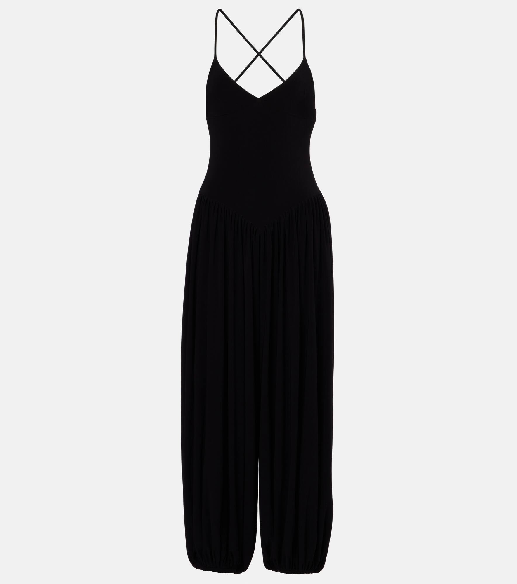 Award-winning designer Norma Kamali's playful approach to design has taken the world by storm since the 1960s. With an open, crisscrossed back, the Kenny jumpsuit has voluminous, pleated pants. Product Details - Material: 95% polyester, 5% elastane - Care instructions: machine wash - Made in China - Designer color name: Black - Item color: black - Item number: P01054104 Size & Fit - True to size - Low back - Cinched waist - Stretchy fabric - Wide-leg - The model seen in the picture is 178cm-5'10" and wearing a size XS