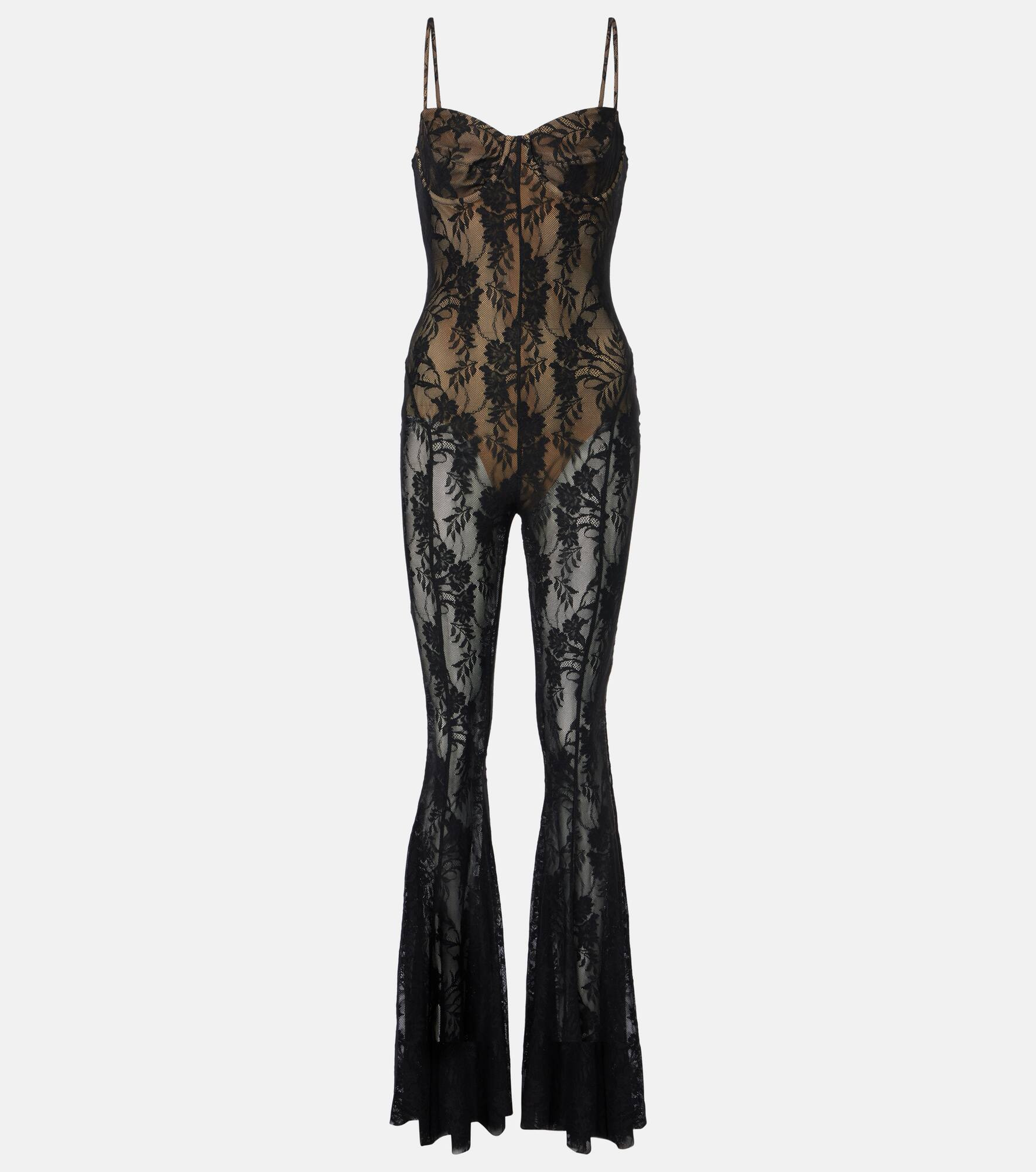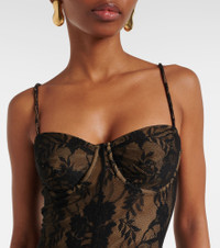 Product Details - Material: 81% nylon, 19% elastane - Care instructions: machine wash cold - Made in China - Designer color name: Black Stretch Lace/Nu - Lining: 72% nylon, 28% elastane - Item number: P01029048 Size & Fit - Fits small to size - we recommend trying one size larger - Internal laced corset for support - Fitted - Stretchy fabric - Slim-leg with a flared hem - High-cut leg - The model seen in the picture is 178cm-5'10" and wearing a size S