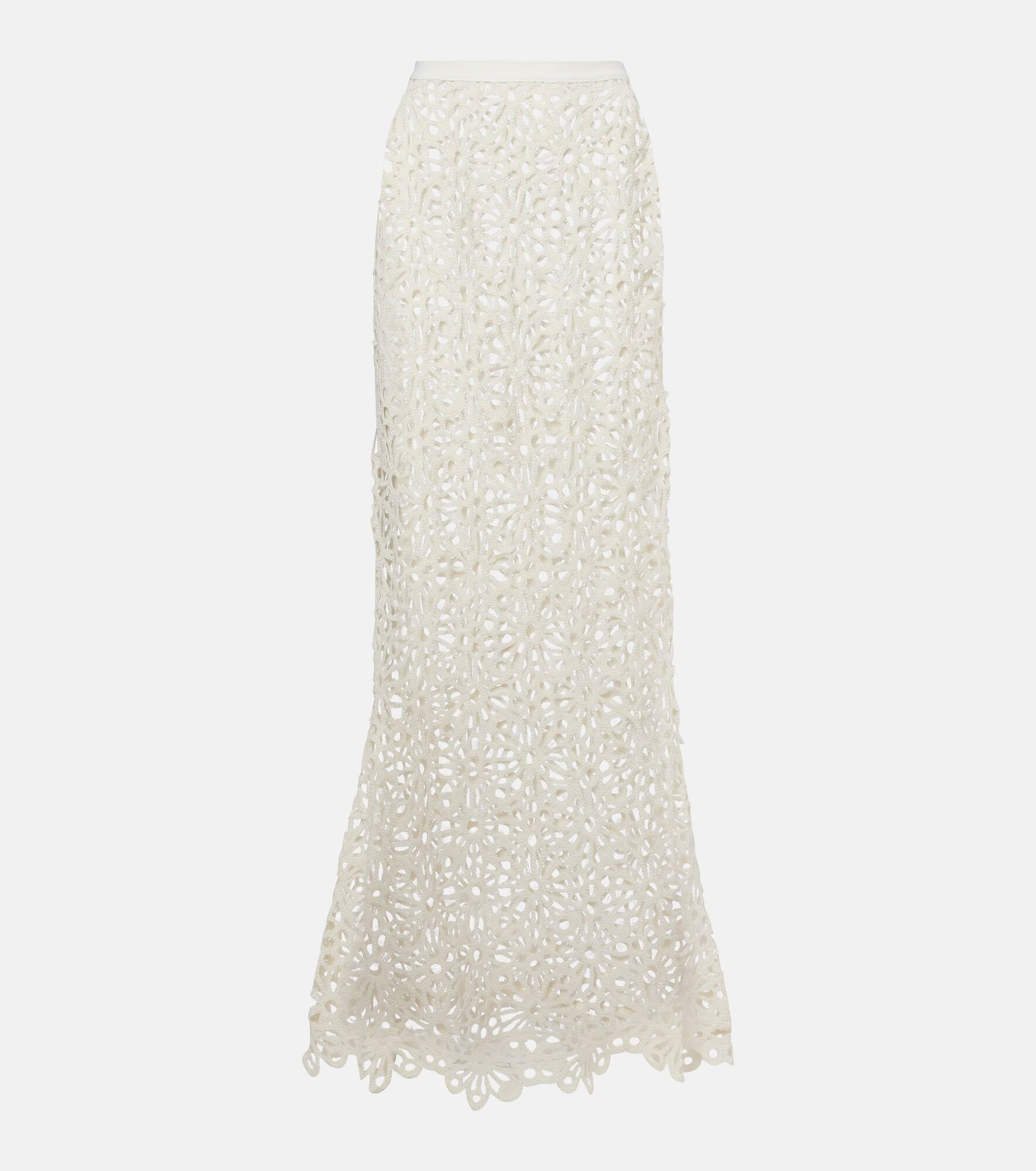 Award-winning designer Norma Kamali's playful approach to design has taken the world by storm since the 1960s. The Obie maxi skirt is crafted from skin-revealing floral lace. Product Details - Material: 90% cotton, 10% nylon - Care instructions: hand wash - Made in China - Designer color name: Cream - Item color: ivory - Item number: P01054096 Size & Fit - True to size - Sheer - Elasticated waist - Non-stretchy fabric - The model seen in the picture is 178cm-5'10" and wearing a size XS