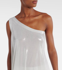 Award-winning designer Norma Kamali's playful approach to design has taken the world by storm since the 1960s. This sleeveless top has a one-shoulder silhouette and is ideal for warm-weather dressing. Product Details - Material: 95% polyester, 5% elastane - Care instructions: hand wash - Made in China - Designer color name: Pearl - Item color: white - Item number: P01063749 Size & Fit - True to size - Semi-sheer - Designed for a loose fit - Stretchy fabric - Falls below the hip - The model seen in the picture is 178cm-5'10" and wearing a size XS