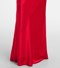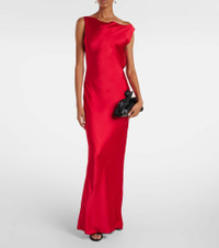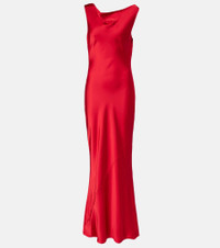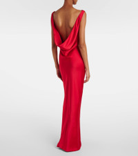 Award-winning designer Norma Kamali's playful approach to design has taken the world by storm since the 1960s. This gown features a cowl neck that drops down to an open-back design with a fishtail hem. Product Details - Material: 100% polyester - Care instructions: hand wash - Made in China - Designer color name: Tiger Red - Item color: red - Item number: P01063788 Size & Fit - True to size - Low back - Cinched waist - Non-stretchy fabric - The model seen in the picture is 178cm-5'10" and wearing a size XS