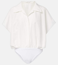 Award-winning designer Norma Kamali's playful approach to design has taken the world by storm since the 1960s. This bodysuit has a classic polo collar and boasts an oversized silhouette. Product Details - Material: 100% polyester - Care instructions: machine wash cold - Made in China - Designer color name: Snow White - Item color: white - Material II: 95% polyester, 5% elastane - Item number: P01063768 Size & Fit - True to size - Oversized - Partly stretchy fabric - High-cut leg - The model seen in the picture is 178cm-5'10" and wearing a size XS