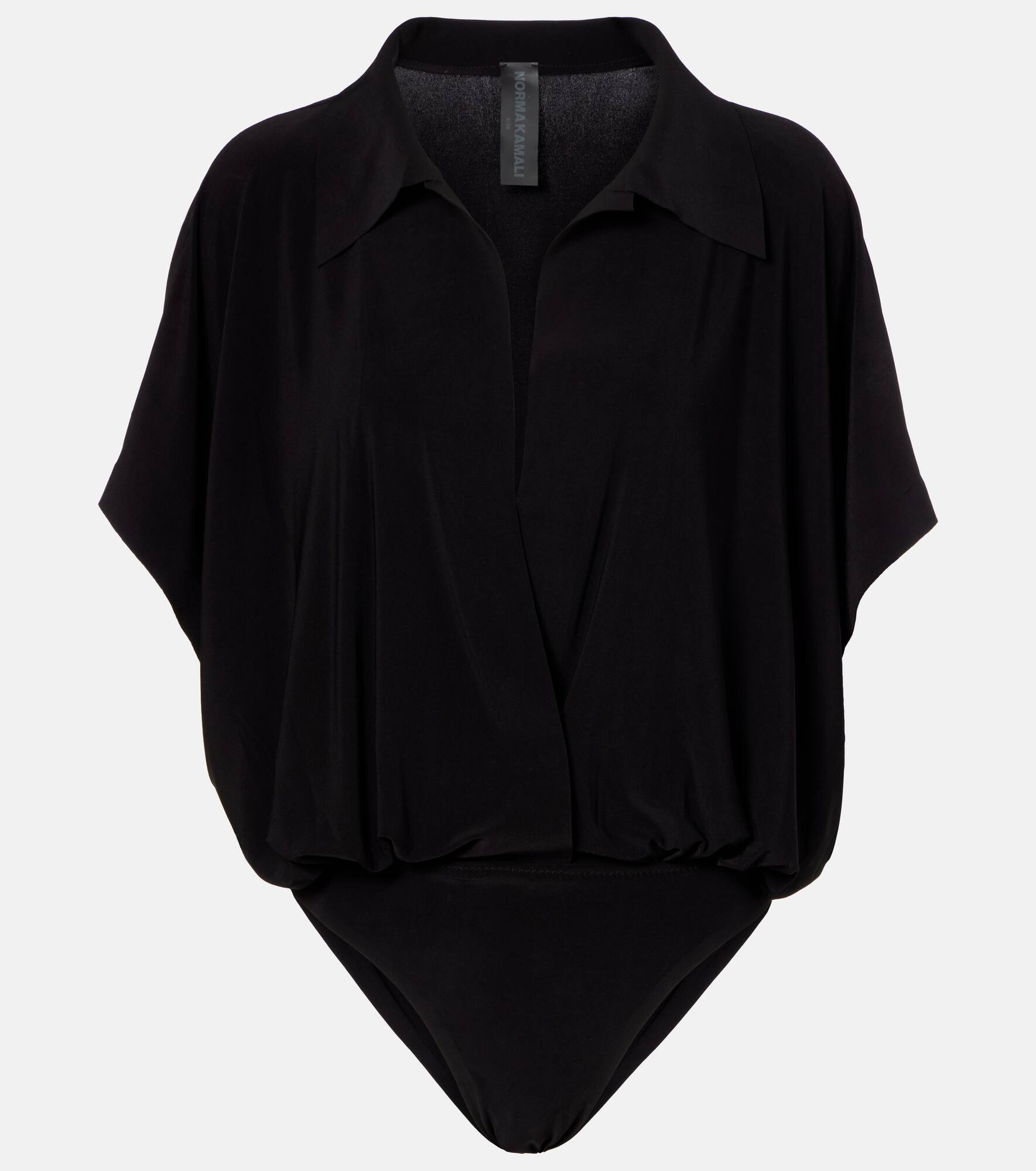 Award-winning designer Norma Kamali's playful approach to design has captivated the world since the 1960s. This oversized bodysuit features a classic shirt collar and is finished with a VELCRO® and snap closure. Product Details - Material: 95% polyester, 5% elastane - Care instructions: hand wash cold - Handmade in China - Designer color name: Black - Item color: black - Closure: VELCRO® fastening, snap-buttoned fastenings - Item number: P01112333 Size & Fit - True to size - Designed for a loose fit - Stretchy fabric - High-cut leg - The model seen in the picture is 178cm-5'10" and wearing a size XS