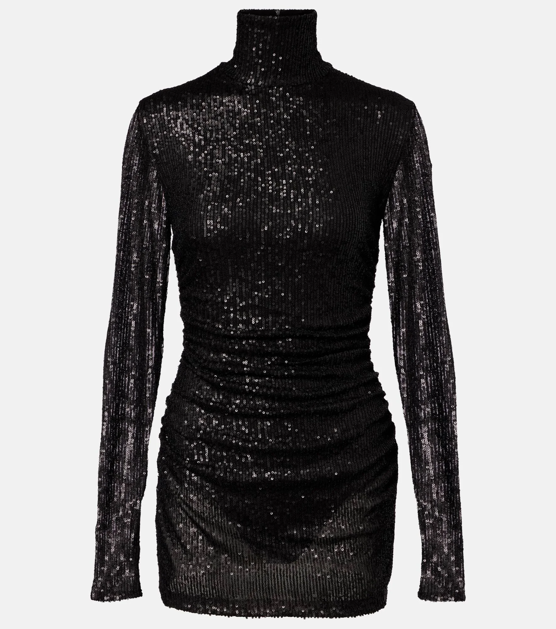 Award-winning designer Norma Kamali's playful approach to design has taken the world by storm since the 1960s. Designed with a fitted silhouette, the Pickleball minidress is a long-sleeved style with all-over sequin embellishments. Product Details - Material: 95% polyester, 5% elastane - Care instructions: hand wash cold - Made in China - Designer color name: Black - Item color: black - Collar: mockneck - Closure: concealed zipped back, snap-buttoned fastenings - Sleeve thumb holes - Item number: P01124287 Size & Fit - Fits small to size - we recommend trying one size larger - Fitted - Slightly stretchy fabric - Medium-cut leg - The model seen in the picture is 178cm-5'10" and wearing a size S