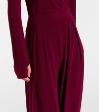 Award-winning designer Norma Kamali's playful approach to design has taken the world by storm since the 1960s. In a toned purple hue, these wide-leg pants frame the body with their pleated, high-waisted silhouette. Product Details - Material: 95% polyester, 5% elastane - Care instructions: machine wash cold - Made in China - Color: purple - Designer color name: Plum - Item color: purple - Elasticated waistband - Item number: P01127774 Size & Fit - True to size - Elasticated waist - Stretchy fabric - Straight leg - The model seen in the picture is 178cm-5'10" and wearing a size XS