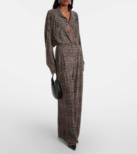 Award-winning designer Norma Kamali's playful approach to design has taken the world by storm since the 1960s. Featuring a classic Prince of Wales check pattern, this long-sleeved bodysuit is complete with a pointed collar and an open V-neckline. Product Details - Material: 95% polyester, 5% elastane - Care instructions: machine wash cold - Made in China - Designer color name: Chocolate Glenn Plaid - Item color: brown, white - Collar: V-neck - Closure: snap-buttoned fastenings - Item number: P01113788 Size & Fit - True to size - Dropped shoulders - Oversized - Stretchy fabric - Medium-cut leg - The model seen in the picture is 178cm-5'10" and wearing a size XS