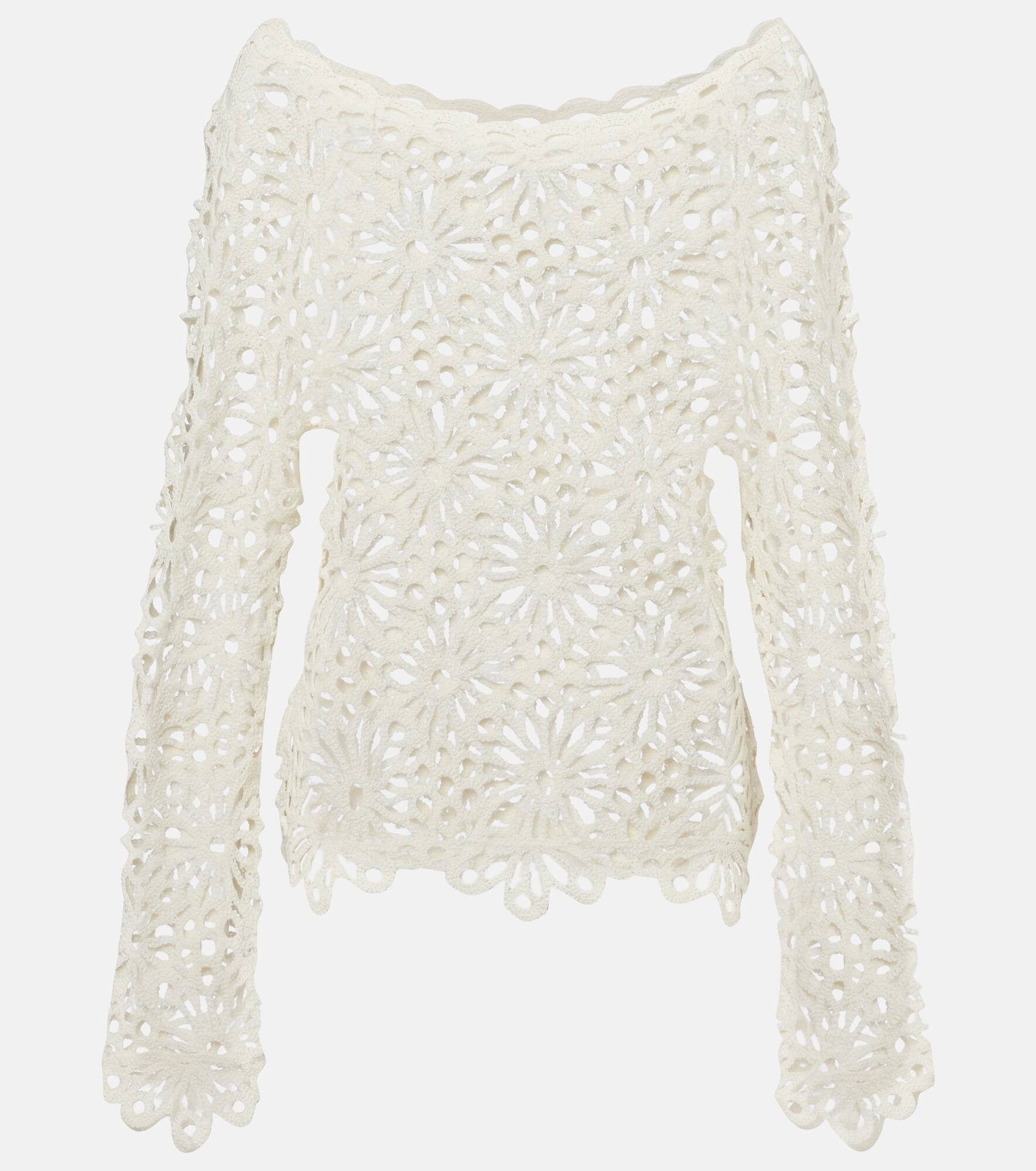 Crochet cotton-blend top