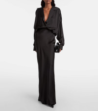 Award-winning designer Norma Kamali's playful approach to design has taken the world by storm since the 1960s. This satin gown is shaped with a relaxed-fit shirting style bodice and elegant floor-length drape. Product Details - Material: 100% polyester - Care instructions: hand wash - Made in China - Designer color name: Black - Item color: black - Closure: VELCRO® fastening - Elasticated waistband - Item number: P01128075 Size & Fit - True to size - Dropped shoulders - Loose bodice, fitted skirt - Non-stretchy fabric - The model seen in the picture is 178cm-5'10" and wearing a size XS